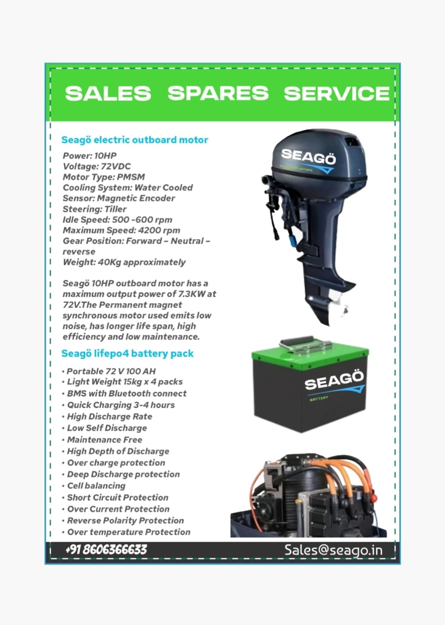 Seagö is a consortium of companies which specialises in manufacturing high technology electrical, electronics, robotics and advanced composites products from India. The company is formed by few friends to develop affordable high technology products for the common man. The key focus is to offer sales, spares & service closer to the customer through the dealer network. The products offered today are electric outboard, inboard, custom motors and car topper boats.